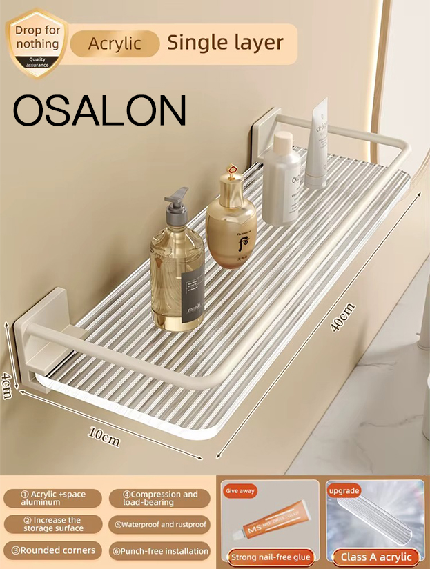 MSEVC Acrylic Transparent Wall Storage Rack Cosmetic Makeup Storage Tray Shampoo Rack Shower Shelf Bathroom Accessories No Drill Shelf